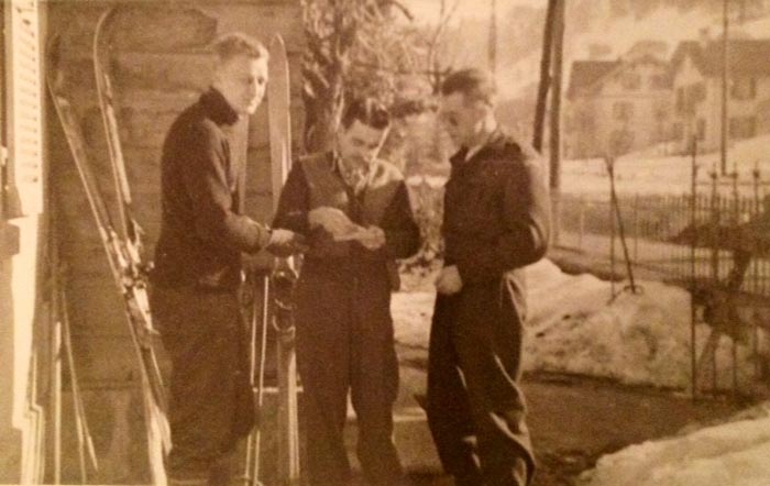Johnny Miller, G.T. "Porky" Edwards, Bill Tench at Walton's, Castle Camps, April 1944