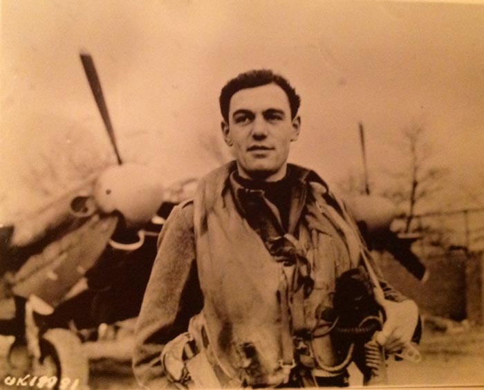 Eric "Collie" Collis, in pilot gear, Amiens-Glisy winter 1945