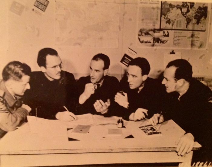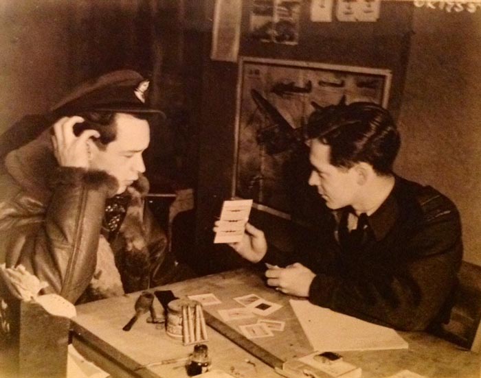 Ted Sexsmith and 'Spy' Eric Knight. Plane recognition practice. Amiens-Glisy, winter 1945