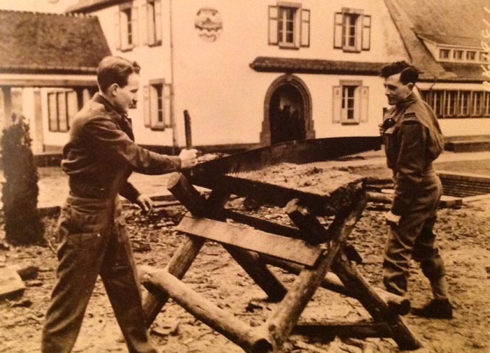 Vincent and Jack W. Roff. Cutting wood for the central heating